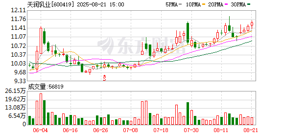 天润乳业(SH 600419,收盘价:11.62元)8月21日晚间发布半年度业绩报告称,2025年上半年营业收入约13.95亿元,同比减少3.3%;归属于上市公司股东的净利润亏损约2186万元;基本每股收益亏损0.0693元。2024年同期营业收入约14.43亿元;归属于上市公司股东的净利润亏损约2791万元;基本每股收益亏损0.0885元。